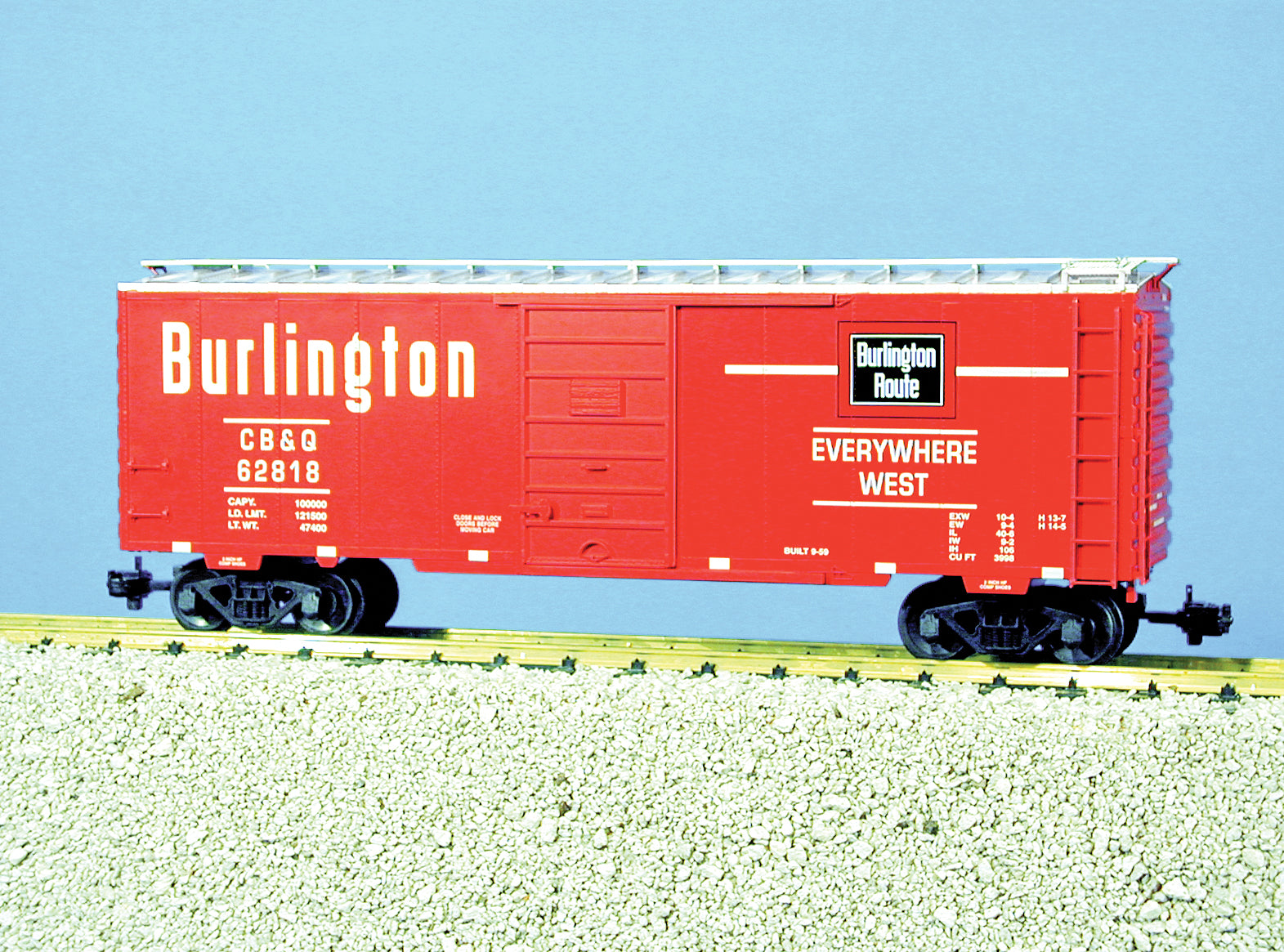 USA Trains R19213A BURLINGTON ROUTE 40' RED Simluated Steel Box Car PS-1