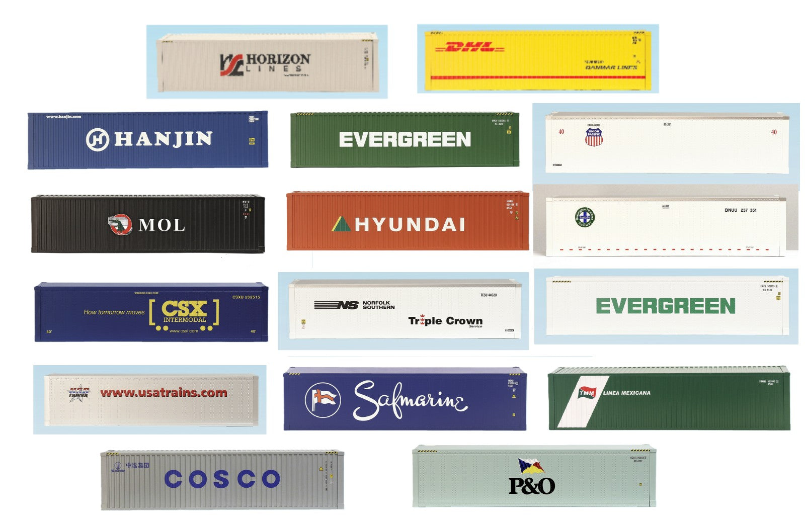 Roll-EZ offers the lowest price on USA Trains Ultimate Series "As Real As It Gets" Intermodal Container Cars. If you can find them at a lower price with tax/shipping from an authorized dealer, email us and we will beat their price.