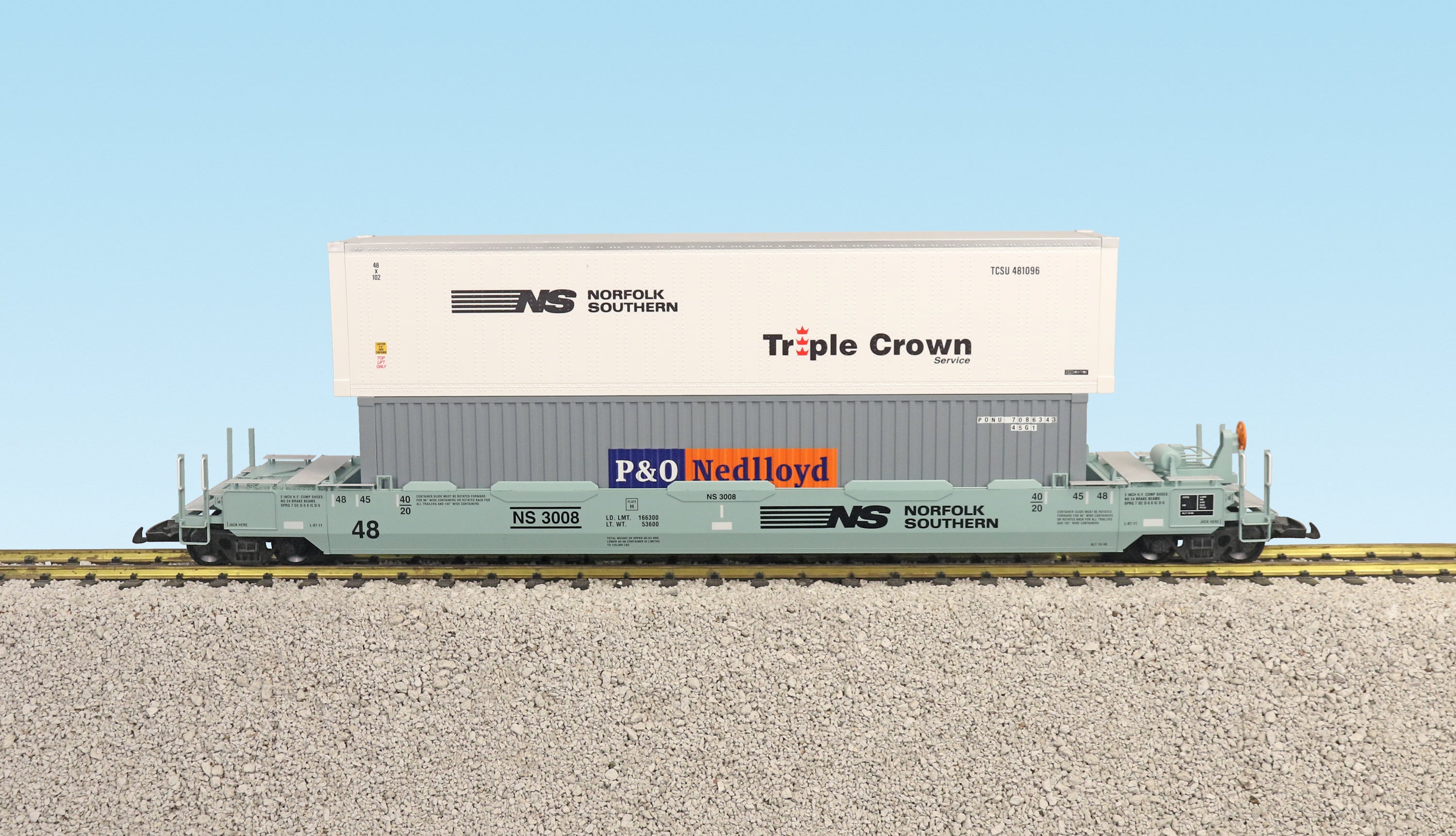 USA TRAINS INTERMODAL Flat Car with 3 Containers - R17120 Norfolk Southern #3