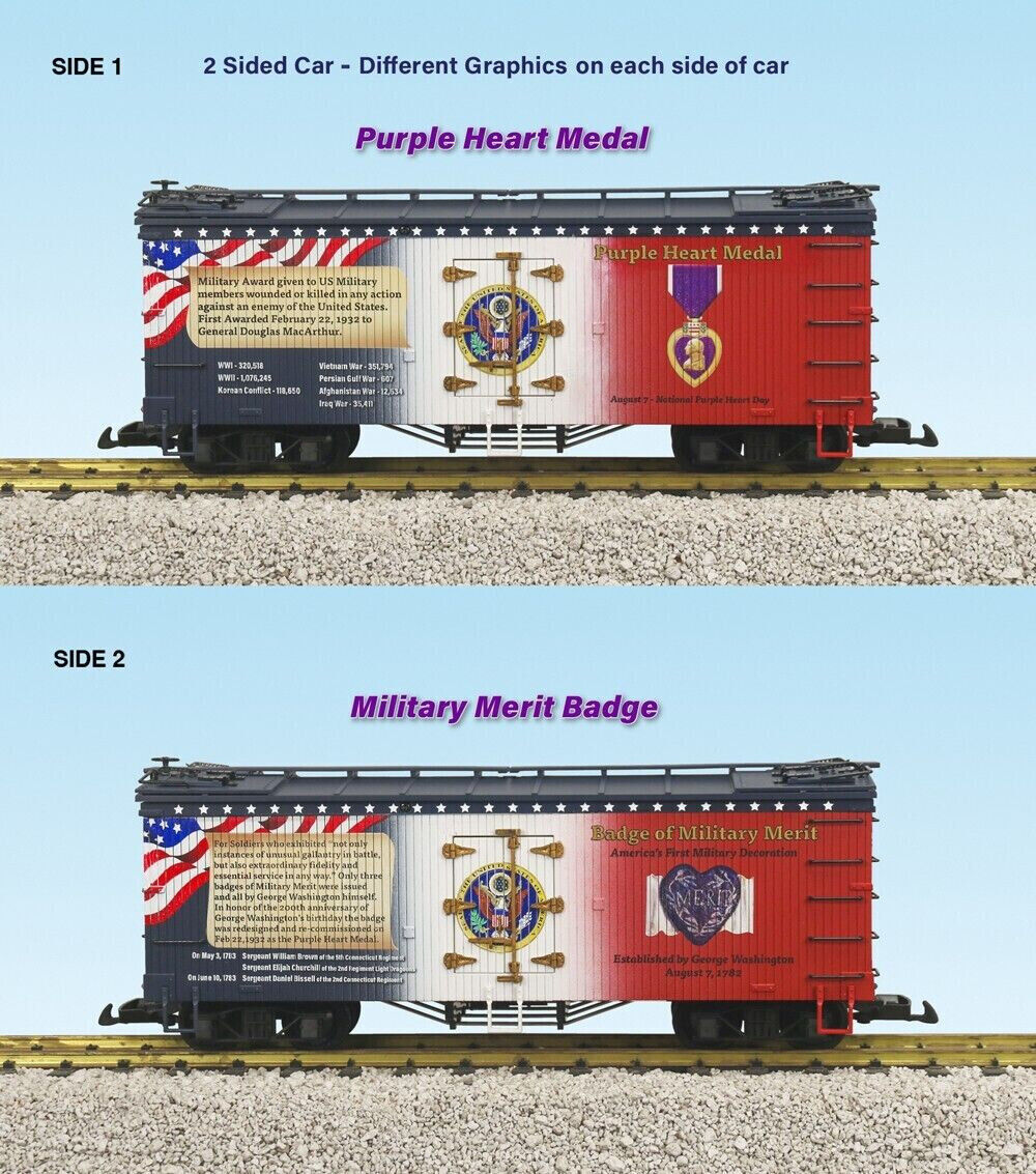 Regular price $85.95 USDSale price $85.95 USD Regular priceUnit price / perUSA Trains R16057 G Purple Heart and Military Merit Badge Patriotic Refrigerator Car. Features: Operating Ice Hatches. Separately Molded Handrails, Ladders, & Corner Steps. Brass Brake...