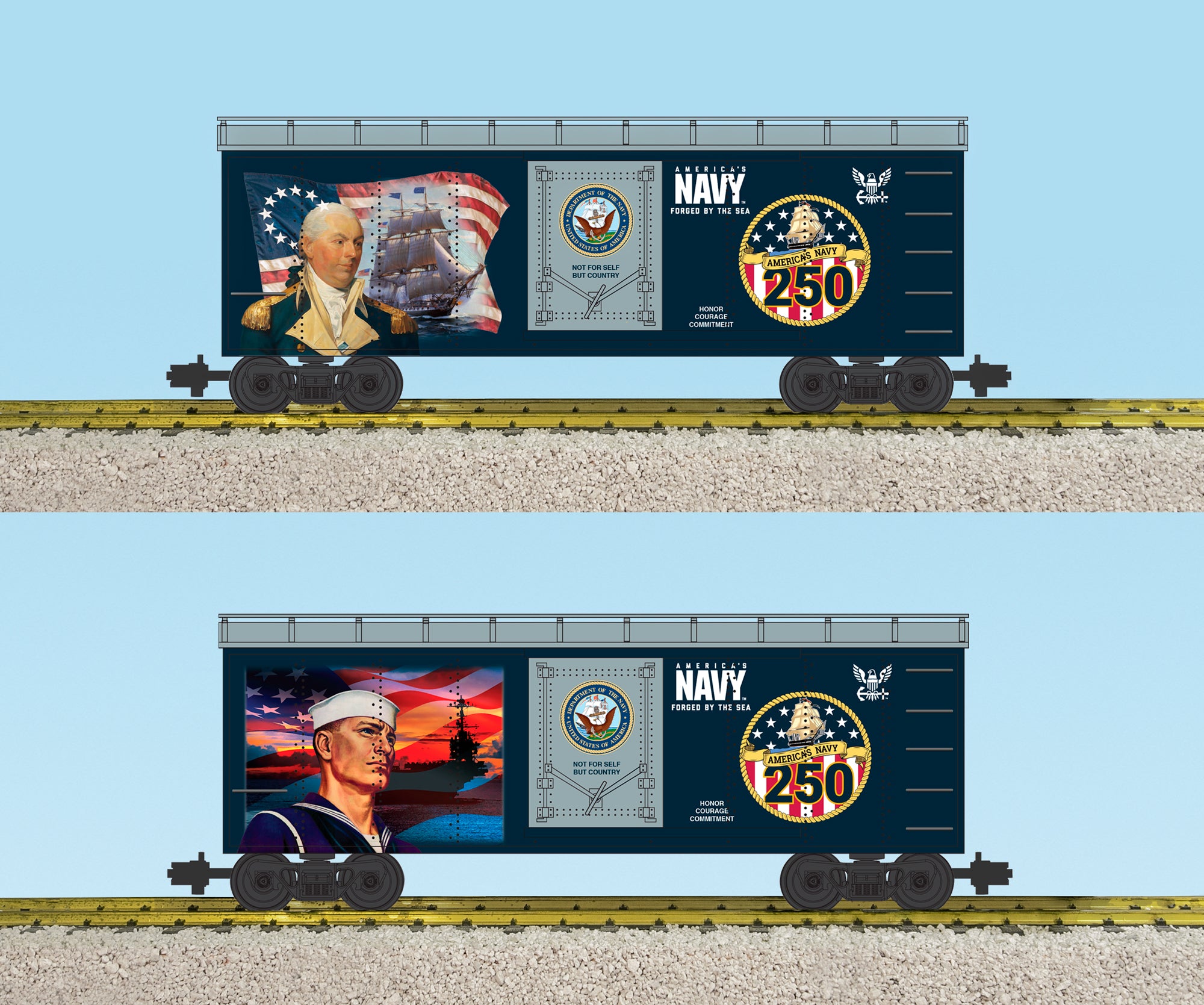 USA Trains R19160 US NAVY 250TH Anniversary 2-Sided Military Boxcar