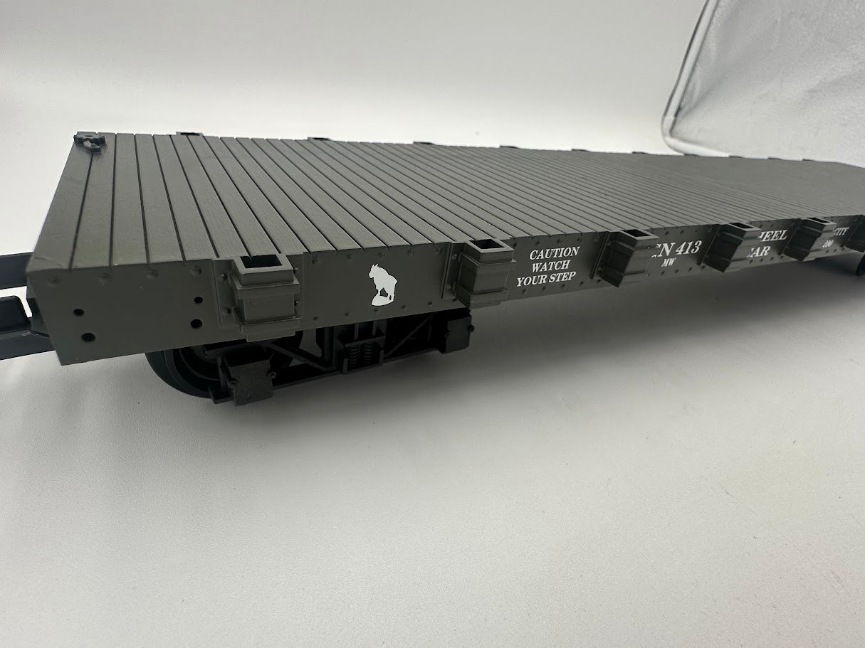 The Flatcar is brand new but it might not ship in a USA Trains Retail box. Includes exactly what is pictured. Great For Custom Load. OPTIONAL DETAIL PARTS ARE SHOWN IN THE PHOTOS AND CAN BE ADDED TO YOUR CART. IT INCLUDES, Grab Irons set, Brake Wheel and Four Steps and They will Match Your Flatcar.